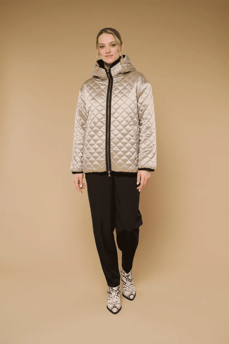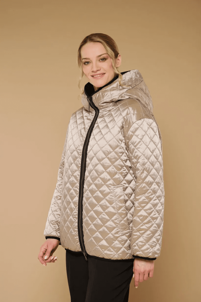 -Обратная сторона куртки прострочена ромбами, выполнена из ткани с блеском